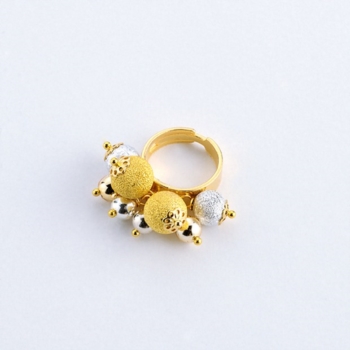 Anello Fantasy Gold Anello con ciondoli in metallo d'dorato e argentato. La base dell'anello è regolabile con un semplice gesto permettendo di adattarsi ad ogni dito. Materiale: perle in metallo, base anello nickel-free Tutti gli anelli possono essere realizzati in argento 925. Segnalare le variazioni nell'e-mail di prenotazione prodotto. P.S. La variante in argento ha un costo aggiuntivo sul prezzo esposto di quattordici euro. Codice Prodotto: CAN010 Prezzo: € 10,00 TORNA ALL'ELENCO