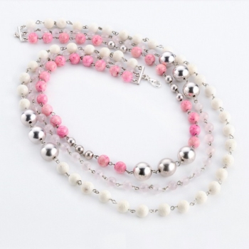 Collana Pink Stone Collana lunga, lavorazione a rosario, i tre fili di lunghezza crescente sono realizzati in diverse pietre dure,corallo bianco, pietra rosa, quarzo rosa impreziosite da grandi perle in Argentone Materiale: pietra rosa,corallo bianco, quarzo rosa, Argentone, gancio nickel-free. Questo tipo di collana può essere realizzato in vari colori e materiali a seconda dei gusti personali. P.S. per permettermi di realizzare al meglio questo gioiello utilizzate l'e-mail di conferma prodotto segnalando le vostre richieste, vi contatterò al più presto per esporvi le mie proposte. Codice Prodotto: CPC002 Prezzo: € 35,00 TORNA ALL'ELENCO