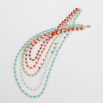 Collana 5 Colori Collana realizzata con cinque fili lavorazione a rosario, mezzo cristallo di Boemia in varie tonalità arricchiti da perle in metallo. Materiale: cristallo Boemia, metallo nickel-free Questa collana può essere realizzata in colori diversi a seconda delle esigenze ed eventualmente i mezzi cristalli possono essere sostituiti da briolette in swarovski con finitura in argento 925. Per avere maggiori informazioni scrivete nell'mail e vi contatterò per costi e variazioni. Codice Prodotto: CPC004 Prezzo: € 35,00 TORNA ALL'ELENCO